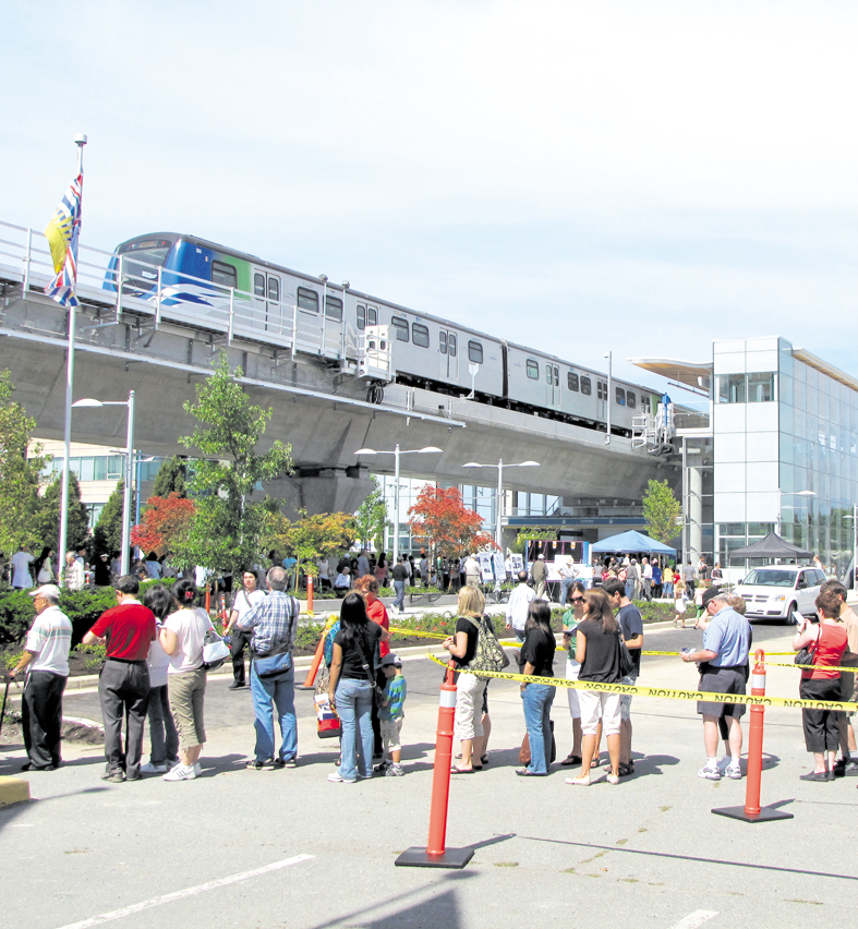 加拿大全國首條直通機場的城市捷運系統加拿大線(Canada Line),8月17日在萬眾期待下,正式開通。在下午短短8小時內,逾8萬市民免費試乘新列車,反應良好。在一些車站外面排隊搭“頭班車”的長龍估計逾4000人;而等候上車時間,最長更達3小時。很多在烈日當空下耐心輪候試乘的民眾表示,不想錯過這個可能是一生才有一次的機會。 到了當天晚上9時,加拿大線末班列車開出後,統計數字顯示整天服務乘客數目,平均每小時逾1萬人,即接近加拿大線每天客運量10萬人次的目標。
