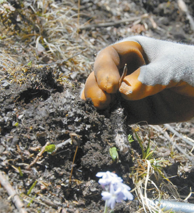 圖為西藏墨竹工卡縣門巴鄉一名當地人在海拔約4800米處的山坡挖出一根冬蟲夏草。