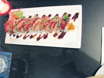 日餐借鑒了西式擺盤,看起來賞心悅目。味道搭配也創意獨到。Tuna TaTaki用的是西式前菜的做法,肉質鮮嫩,入口鬆化;炸紅薯條上面放了芒果和三文魚,7.50元;Volcano卷的特別之處,是不像一般壽司卷那樣是冷吃的,這種意思是火山卷的壽司,帶辣味,適合熱吃,10.95元;151 Fire Roll是吞拿魚卷,這個菜端上來時,廚師往菜上澆了名叫151 的烈酒,用一種特制的火機將菜點燃,酒香就滲透的魚肉里了。這個菜很新奇,并不貴,8.95元。