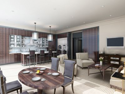 私人住宅業主有權使用酒店的全部設施,包括28000平方英尺的水療按摩浴池,還有停車及清理、打掃服務。