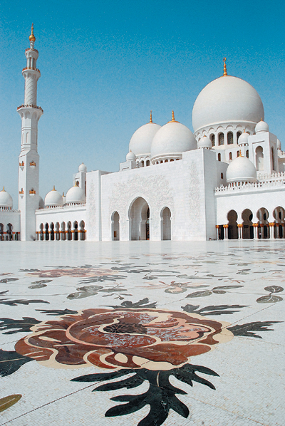 阿布扎比雖有不少外觀獨特的新廈,可是華麗堂皇的建築物,始終最能代表這個酋長國的富貴特質,像當地的扎耶德大清真寺(Sheikh Zayed Grand Mosque),其奢華布置便令人看得目瞪口呆。這座花費約42億港元構建的清真寺,以阿聯酋建國總統扎耶德的名字命名,不過由他主導興建的這家回教寺廟,第一項活動竟是為這位阿聯酋國父的葬禮,目前他便安葬在寺院旁邊,供人憑弔。