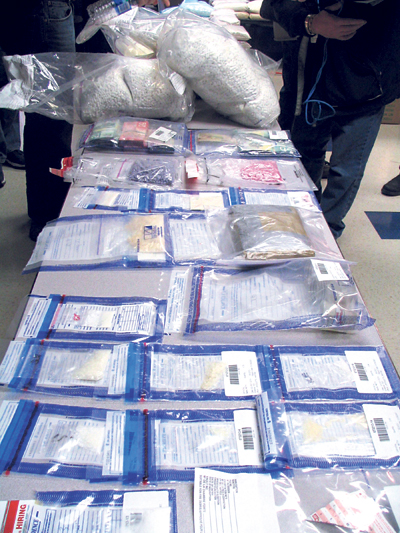 卑詩省法官指騎警辦案手法違憲,撤回對5個華裔的控罪。圖為警方在2007年搜獲大批與案件有關的毒品。