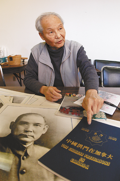 多倫多洪門前輩吳培芳老人拿出珍藏史料,講述國父孫中山四次訪加推廣革命進程的史實。