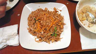 記者試論幾樣菜,覺得味道不錯。帶有牛肉末的沙拉,調味很特別,10.95元;黃咖哩海鮮很能下飯,13.95元;泰式炒米粉味道很好,如果加入雞肉,12.95元;炸香蕉芒果冰激凌風味特別,5.5元。