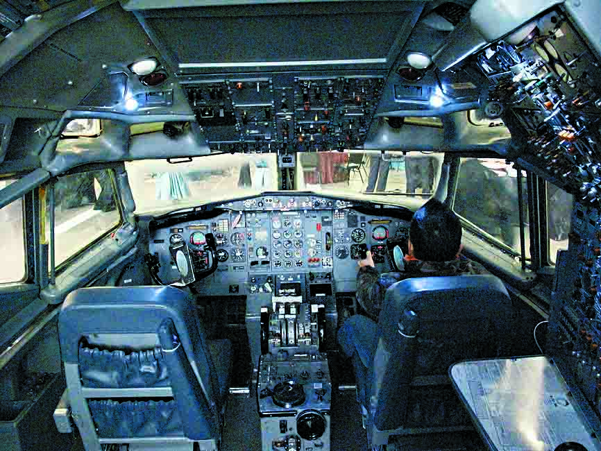 ■參觀者可佯裝操控飛機的滋味。