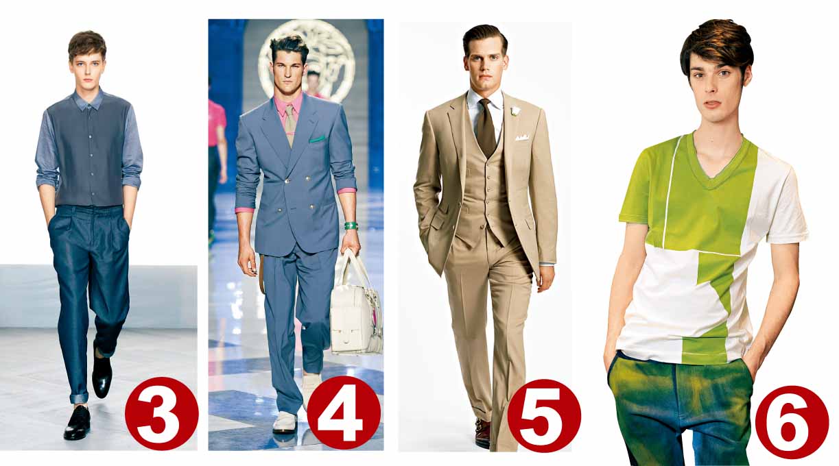 3. 2012 SS Cerruti 1881 , 4. 2012 SS Versace , 5. 2012 SS Ralph Lauren , 6.Brooks Brothers綠色拼米色V領T恤。